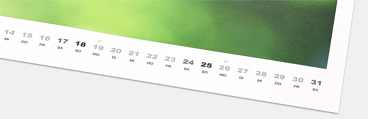 Die Verwendung von hochwertigem Markenfotopapier sorgt dafür, dass Ihr Kalender zu einem echten Qualitäts-Erlebnis wird. Darauf geben wir unsere 100% Zufriedenheitsgarantie.