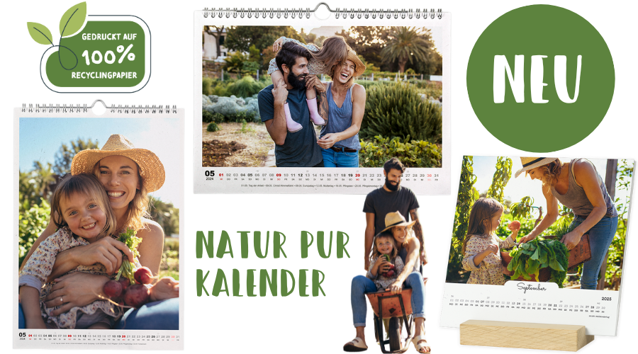 Entdecken Sie die Natur Pur Kalender® in vier Ausführungen – Ihre umweltfreundliche Entscheidung für besondere Erinnerungen. Unsere Kalender sind nicht nur Sammlungen Ihrer schönsten Momente, sondern auch ein Zeichen für nachhaltiges Handeln.