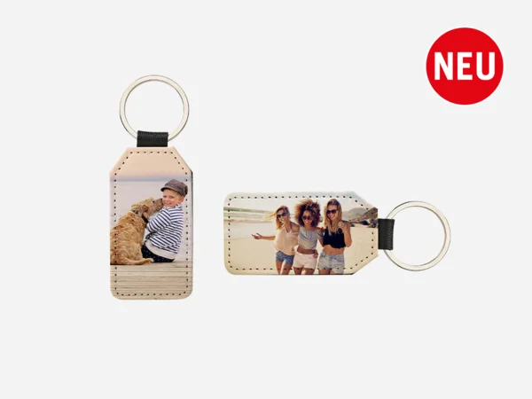 Neben den gravierten Holz-Schlüsselanhängern gibt es bei allcopSTORE jetzt auch moderne Foto Schlüsselanhänger, die sich individuell mit Ihrem Lieblingsmotiv gestalten lassen. So tragen Sie Ihre schönsten Erinnerungen immer bei sich – am Schlüsselbund, an der Handtasche, am Rucksack oder am Koffer. Die Vorderseite wird in brillanten Farben mit Ihrem Foto bedruckt, die Rückseite in strukturierter Lederoptik sorgt für eine angenehme Haptik und einen hochwertigen Eindruck. Jeder Schlüsselanhänger mit Foto ist robust, leicht und für den täglichen Gebrauch geeignet – ideal als kleines Fotogeschenk, persönliches Accessoire oder individuelles Werbemittel.
