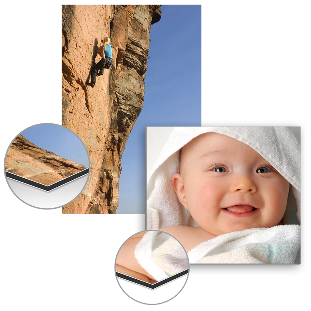 Bei der Herstellung Ihrer Alu-Dibonds drucken wir Ihr Motiv direkt auf die 3mm starke Platte. Alu-Dibond ist leicht und zudem sehr formstabil. Es besteht aus einem Kunststoffkern und zwei Aluminiumplatten. Inklusive Wandhalterung
