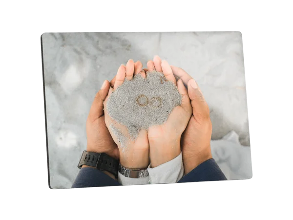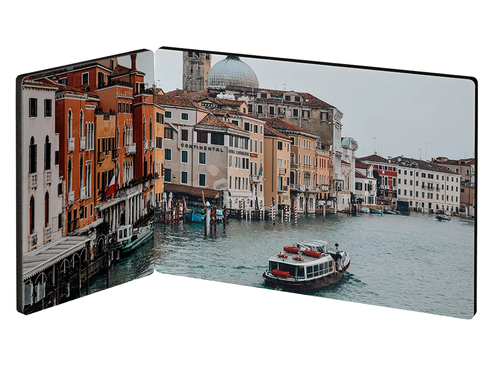 Du kannst entweder ein einziges Bild über beide Elemente strecken oder mehrere Fotos zu einer persönlichen Collage kombinieren. Die hochglänzende Oberfläche sorgt dabei für leuchtende Farben, brillante Details und beeindruckende Tiefenwirkung.
