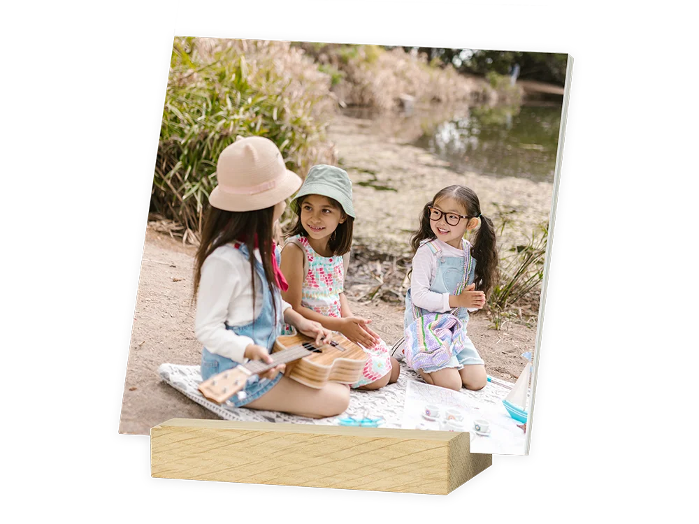 Der Holzaufsteller mit Ihren Lieblingsbildern eignet sich im quadratischen Format 13 x 13 cm auch ideal als Geschenk für Familie und Freunde.