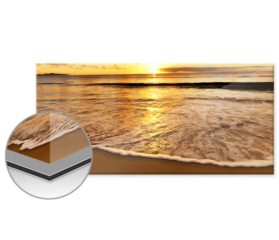 Ihr Foto hinter 3 mm starkem Acrylglas, gedruckt auf edlem Markenfotopapier und verstärkt durch eine 3 mm dicke Alu-Dibond Platte, entfaltet so eine ganz besondere Brillanz und Tiefenwirkung wie man sie sonst nur aus Kunstgalerien kennt. Als Gallery Print bezeichnet ist dies eine besonders edle Art, Ihre schönsten Fotos zu präsentieren.