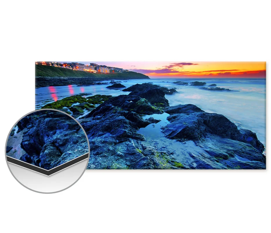 Bei der Herstellung Ihrer Alu-Dibonds drucken wir Ihr Motiv direkt auf die 3mm starke Platte. Alu-Dibond ist leicht und zudem sehr formstabil. Es besteht aus einem Kunststoffkern und zwei Aluminiumplatten. Inklusive Wandhalterung