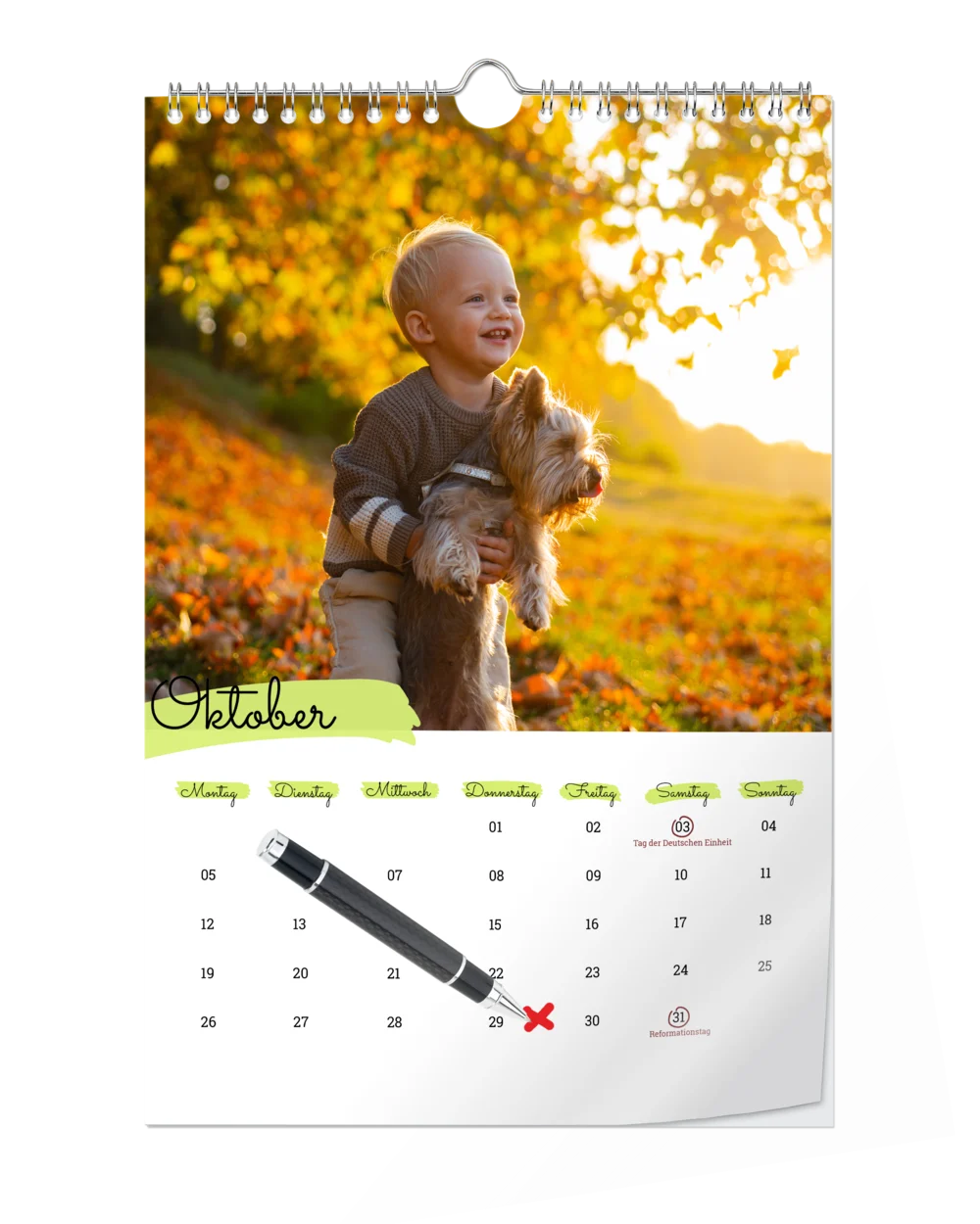 Gestalten Sie Ihr Jahr ganz nach Ihren Wünschen – ob mit Urlaubsfotos oder Bildern Ihrer lieben Familie – Ihr persönlicher Kalender wird zum Blickfang in Ihrer Wohnung.
